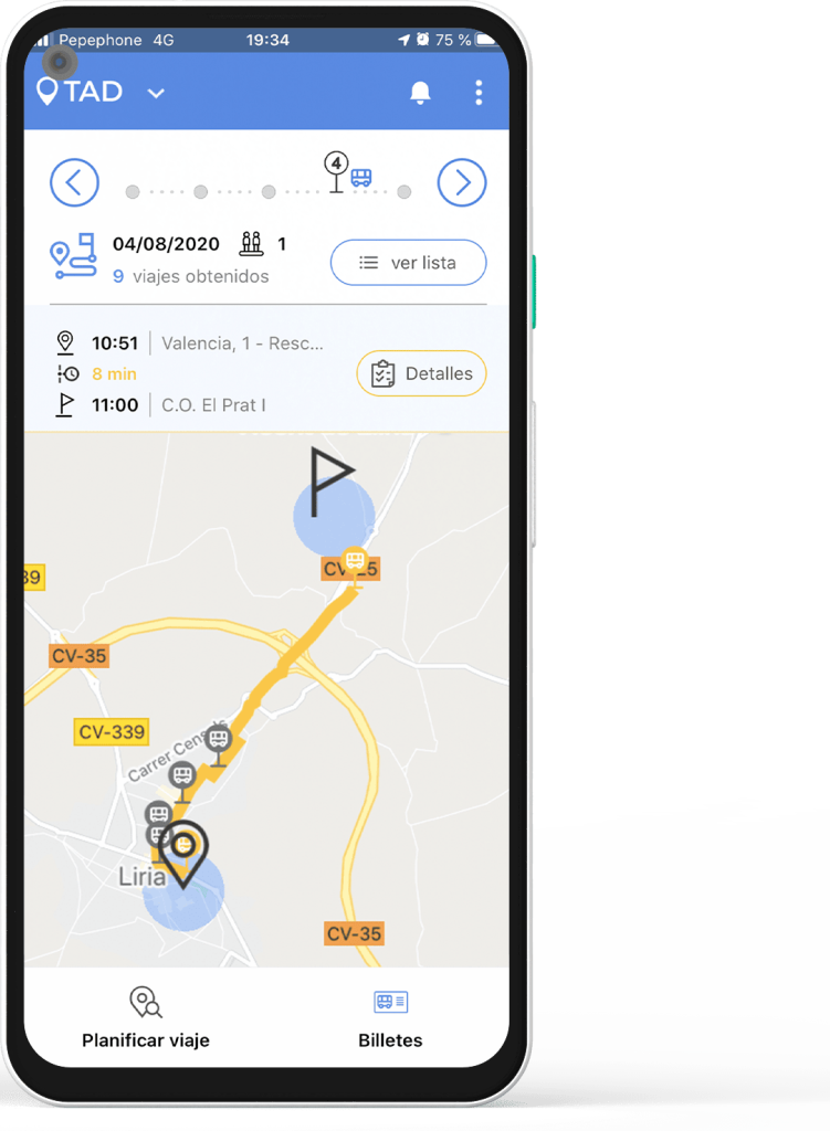 Desarrollamos una aplicación móvil para un servicio real de transporte a demanda implantado en zonas metropolitanas y residenciales.